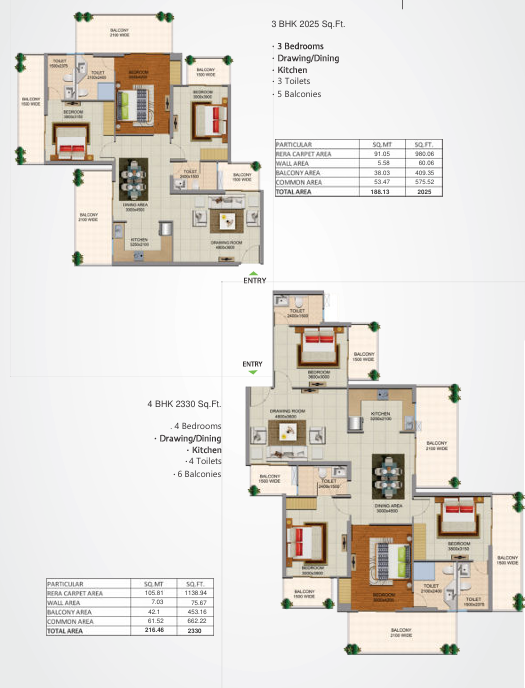 | Flooring: | Vitrified tiles in Drawing Room, Kitchen & Bedroom, Ceramic tiles in balconies and bathroom |