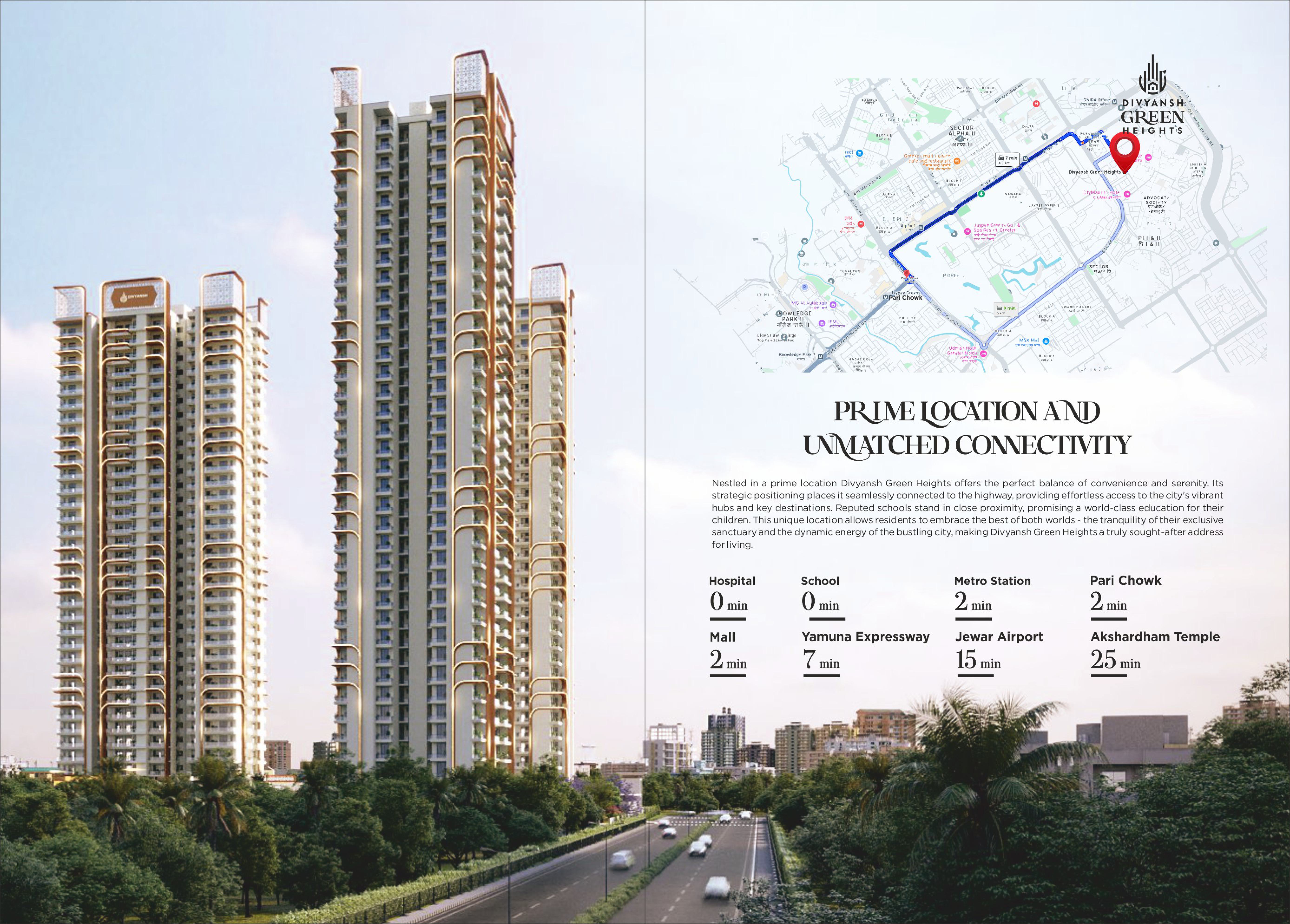 Divyansh Green Heights is more than just a residential community—it's a premium lifestyle destination designed to offer luxury, comfort, and sophistication. Nestled in Greater Noida, the project combines world-class architecture, expansive green spaces, and modern facilities, creating an address that defines exclusivity.