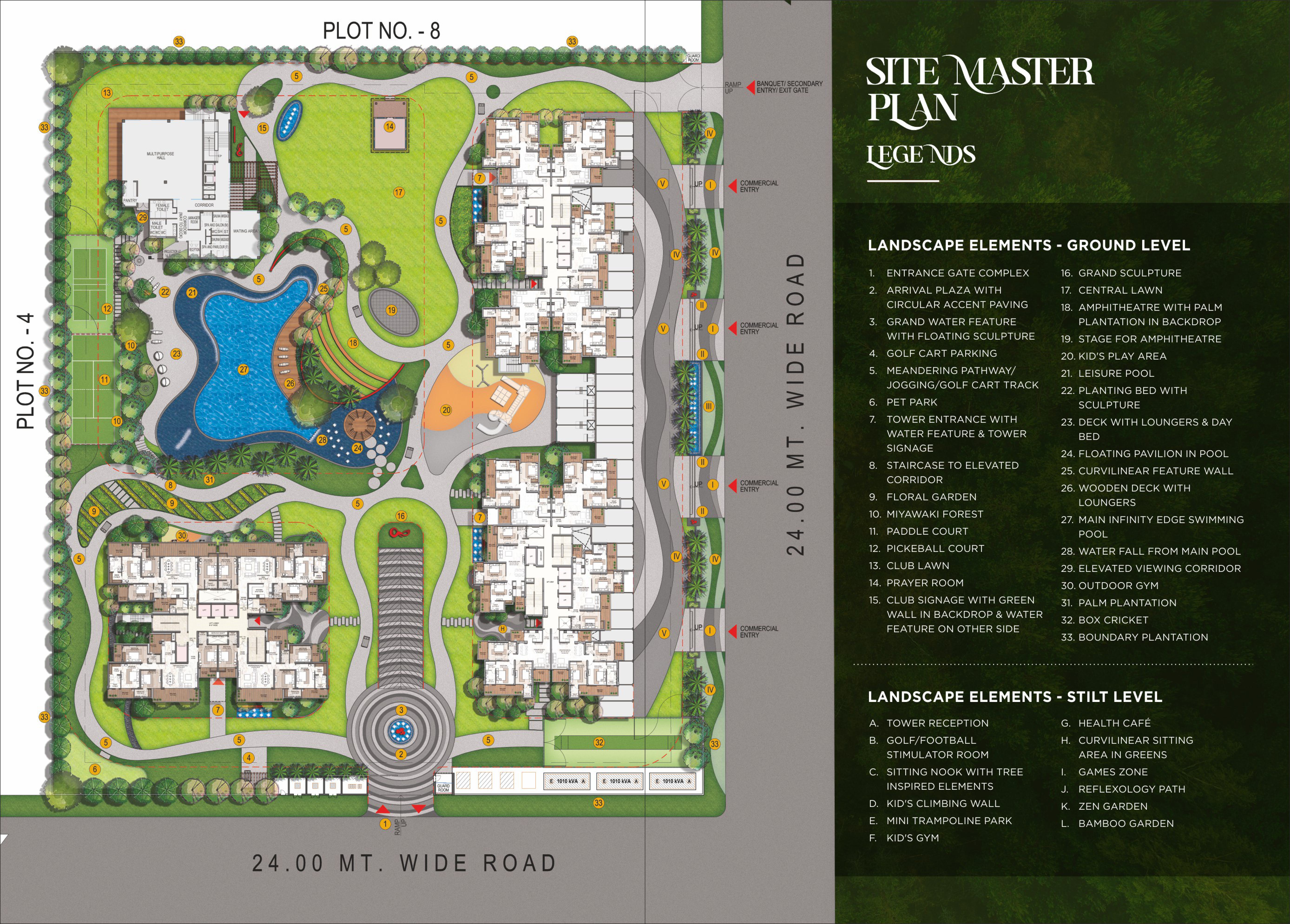 The master plan of Divyansh Green Heights has been thoughtfully designed to maximize space, greenery, and community living. Key highlights include: